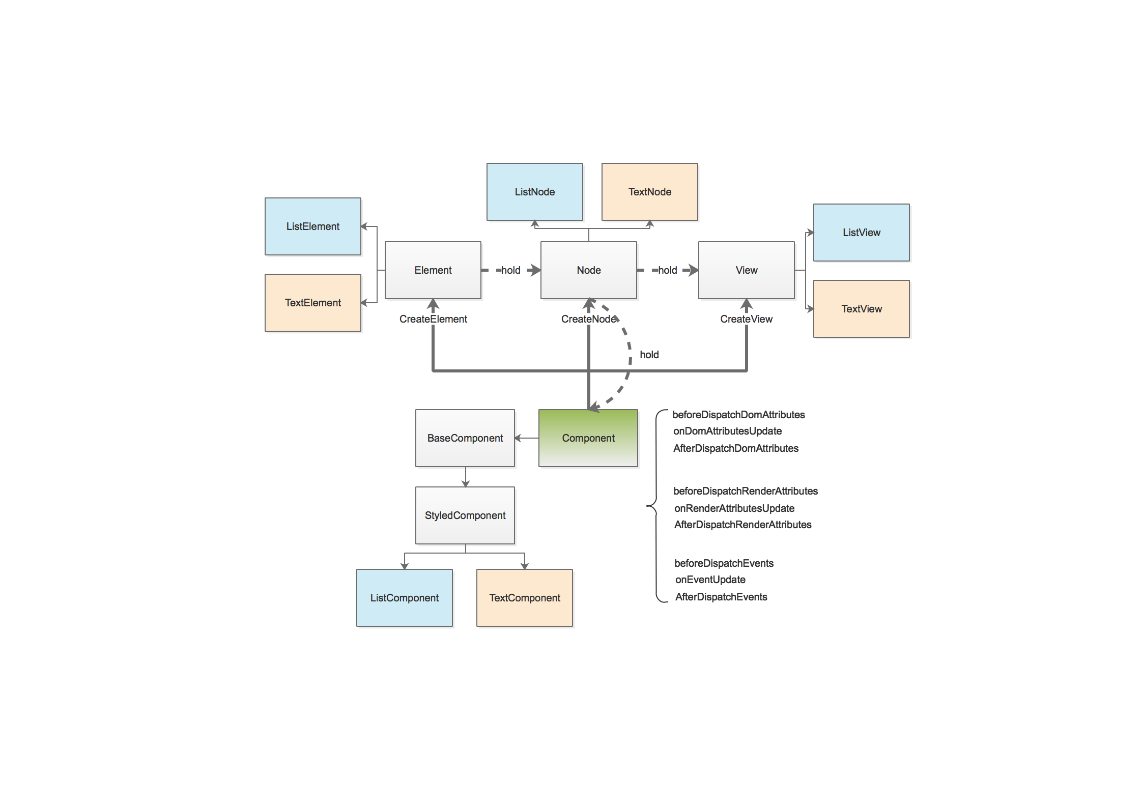 - 在渲染层面上,Mint引入了增量渲染保证了在节点更新时,Mint只需要重新渲染有变更的节点。此外还实现了view层级合并算法,有效降低了因Flex布局形式导致的复杂视图的view层级数目。