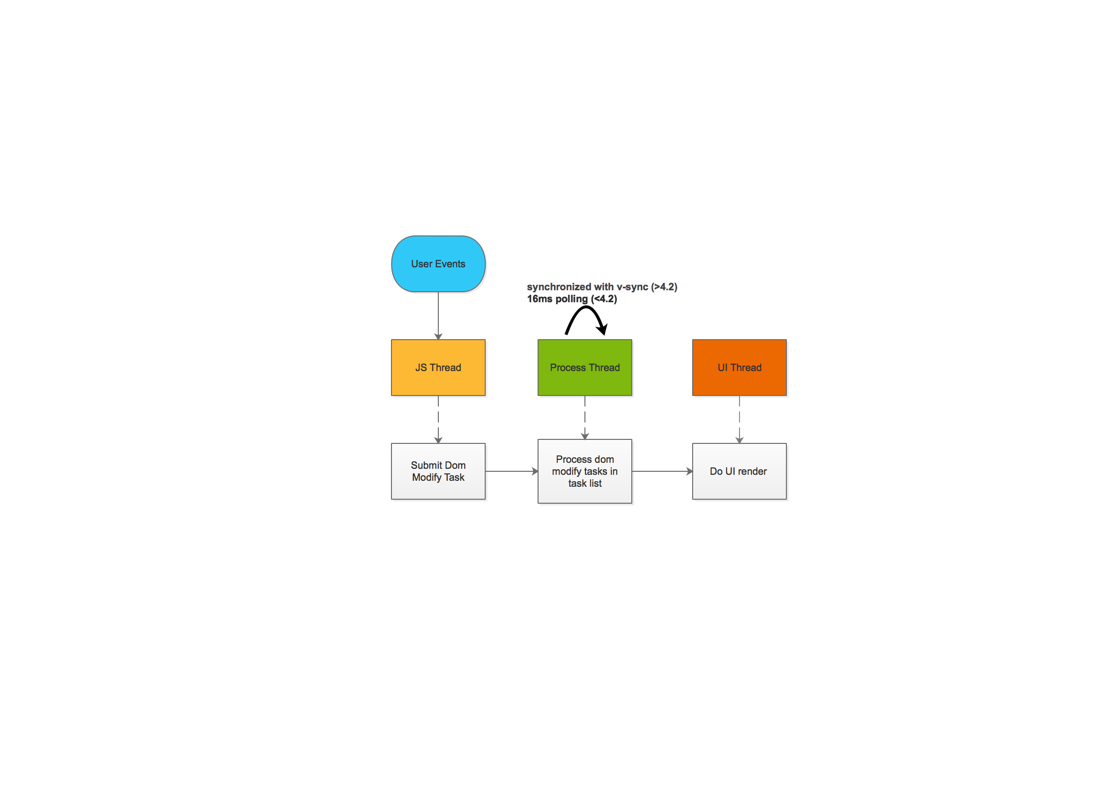 Mint采用异步布局+同步渲染的方案,其流程图如下: