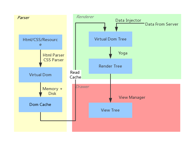 对于一个前端模板的处理,Mint会将Html文件转换成Dom Tree结构,最终渲染成真正的View Tree。
